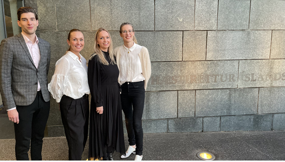 Hinn 28. október 2021 komu saman starfsmenn Hæstaréttar og kvöddu fjóra starfsmenn sem eru að hverfa til annarra starfa. Aníta Gísladóttir hefur um árabil starfað í móttöku réttarins en hún er nú flugfreyja hjá Icelandair. Hilda Valdimarsdóttir hefur verið aðstoðarmaður hæstaréttardómara frá árinu 2015 en hún var nýlega ráðin skrifstofustjóri Héraðsdóms Reykjavíkur. Margrét Helga K. Stefánsdóttir hefur verið aðstoðarmaður frá árinu 2020 en hún hefur um hríð verið settur héraðsdómari og fer síðan til starfa hjá Dómstólasýslunni. Peter Dalmay hefur verið aðstoðarmaður frá árinu 2020 en hann fer til starfa á Mörkinni lögmannstofu. Hæstiréttur þakkar þeim öllum vel unnin störf og óskar þeim velfarnaðar á nýjum starfsvettvangi. Myndin var tekin við þetta tækifæri.